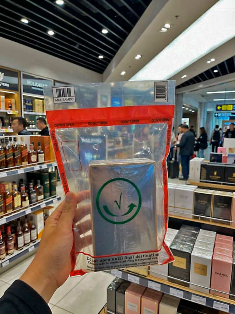 Las bolsas de seguridad para Duty Free (STEB) combinan transparencia total y cierre con evidencia de apertura, además de numeración y código de barras únicos en cada pieza.